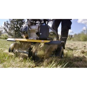 Man kan let afmontere fræserknivene og påmontere mosfjernersættet på hver side af akslen, og så er man klar til at fjerne mos.