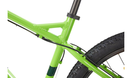 Sykkelen har en lett aluminiumsramme med høy stivhet, noe som gir god slitestyrke og lang levetid. 26" hjul gir smidig kjøring både på asfalt og i variert terreng. Den dempede forgaffelen gir komfort og kontroll ved kjøring over røtter og humpete stier.