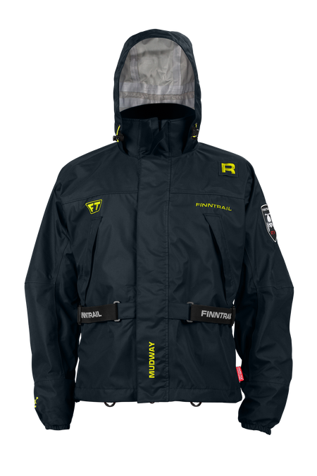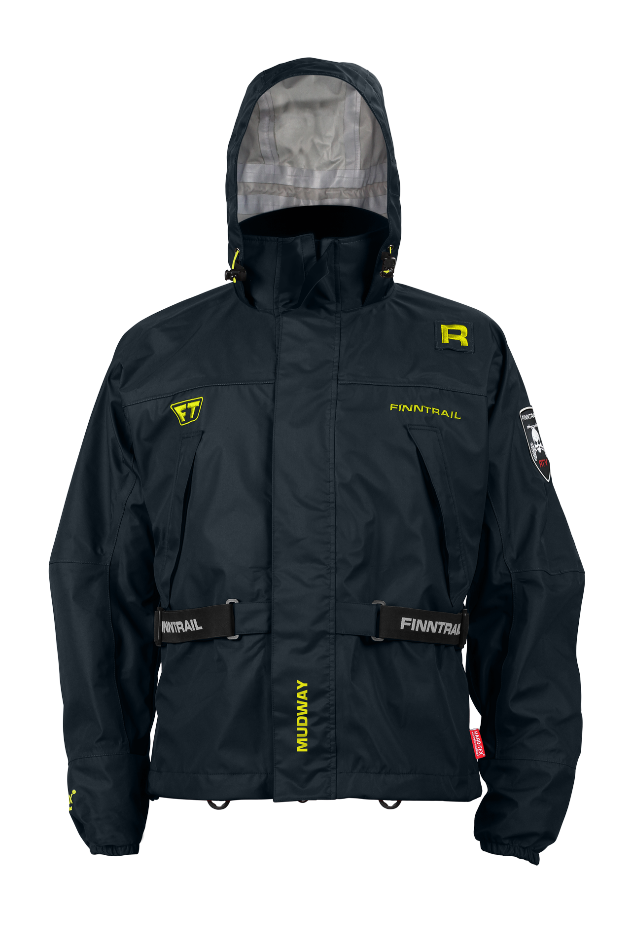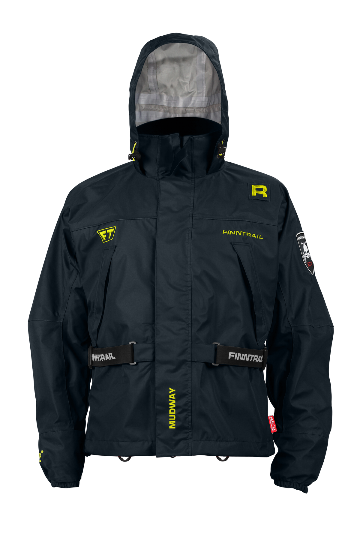 FINNTRAIL MUDWAY 2000 inneholder feste for walkie-talkie og reflekser som forbedrer synligheten. Magnetisk klaff beskytter frontglidelåsen og tåler gjørme. Justerbar hette som kan lagres i kragen, gir mulighet til å sette på hjelm + justerbare håndleddsmansjetter som hindrer vanninnstrømning. Teknologiene som brukes til designet og det nye trelags HARD-TEX-stoffet er vanntett, fuktighetsavvisende og holdbart.