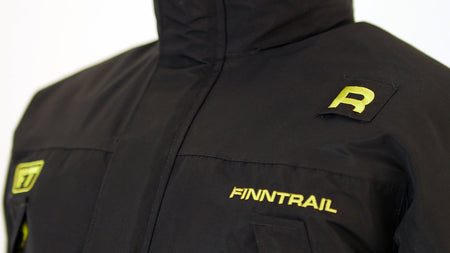 Jakken er utstyrt med elastisk belte med Finntrail logo, fleeceforet krage for ekstra komfort og justerbart strikk for å gi en sikker og god passform.
