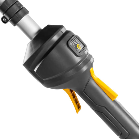 Beskyttelsesskjerm på trimmerhode og sikker dobbel startknapp