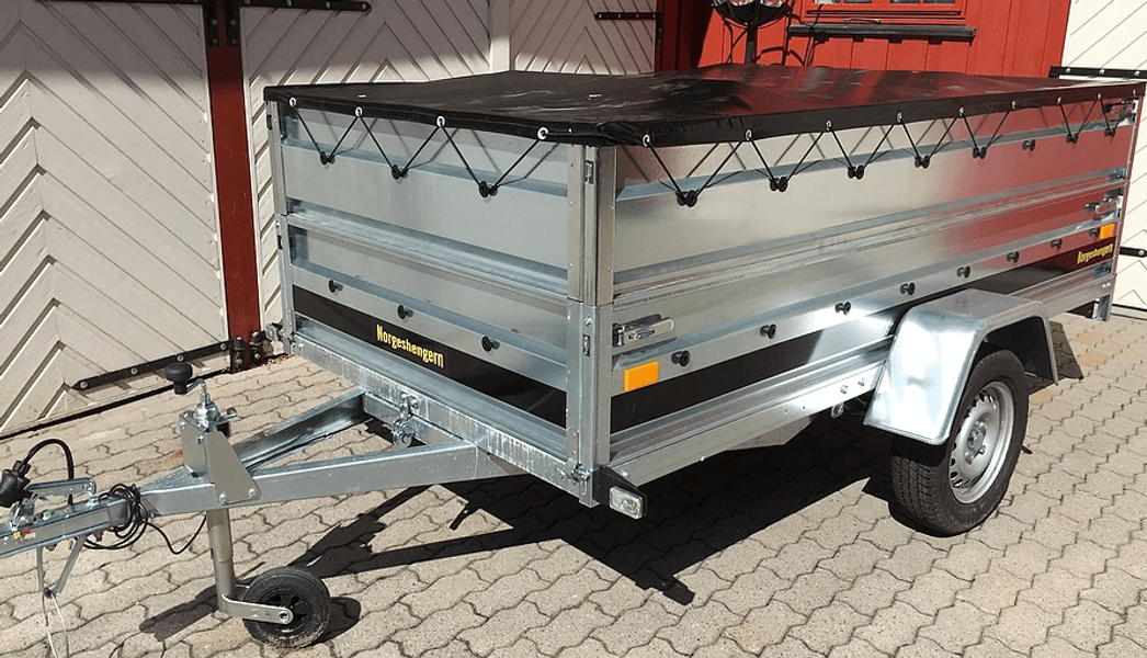 Ubremset tilhenger med stort kassemål og vippetipp. En bra tilhenger til transport av bygningsplater, hagetraktorer, etc.