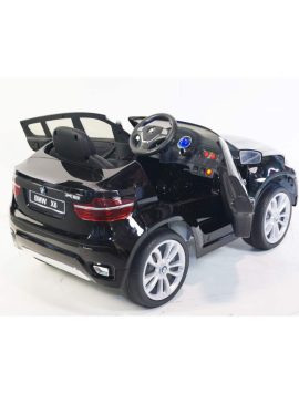 Årets nyhet. BMW X6 er en lekker elektrisk bil laget på lisens fra BMW med 2 kraftige 550 12v motorer. El bilen er av høy kvalitet noe som sikrer barnet mange timer med kjøring. De kraftige motorene gir trekk på begge bakhjulene. Dette gjør bilen ideell for kjøring på gress og i terrenget. BMW X6 barnebil har innebygget LED Lys foran. Det er også innebygget batteriindikator. Bilen leveres med fjernbetjening, som gjør det mulig å kjøre rundt med barnet om han/hun ikke mestrer kjøringen selv. Leveres komplett med alt utstyr og er klar tl bruk ut av esken. Produktspesifikasjoner: Anbefalt alder: 3-6 år Lyd: Har lydeffekter og musikk Plastsete Lys: LED-Lys i front og i instrumentpanel Volumknapp for å skru opp/ned på musikk/lydeffekter Gir: 2 fremover og 1 bakover Hastighet: 5-6 km/t Batteri: 12V 7AH Motor: kraftig 2 X 550 motorer 9000RMP Lader: 220-240V Fjernkontroll 1 sitteplass Maksvekt: 30 kg Kromdetaljer og emblem Motorlyd og tut Ladetid 8-12 timer Størrelse: 115 x 65 x 59 cm Emballasjestørrelse: 117 x 64 x 44 cm G.W./N.W(KG): 20,5/16 CE godkjent & Rohs