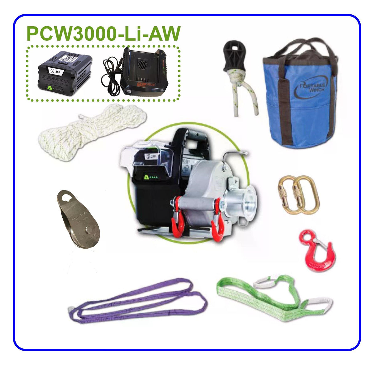 Bærbar batteridrevet vinsj med tilbehør 5A batteri og lader PCW-3000-LI-VK-3