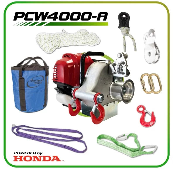 PCW4000-A Bærbar bensindrevet vinsj med tilbehør.