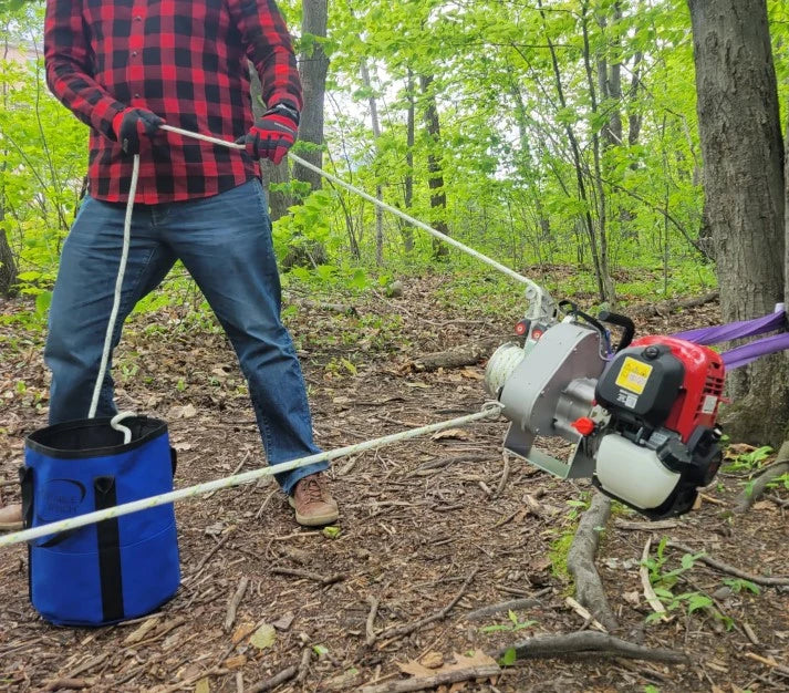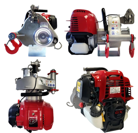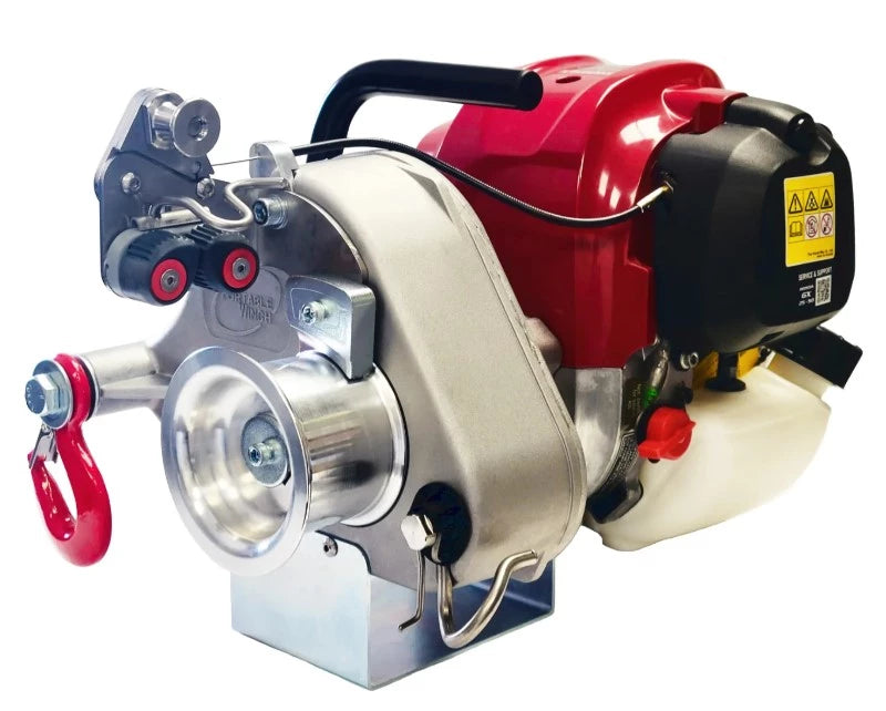 Denne modellen drives av den 360° skrånende 4-takts Honda GX50-motoren for jevn ytelse og pålitelighet, og tilbyr en bemerkelsesverdig trekk kraft på 1000 kg (2200 lb). Legg til et trinsesystem med to doble trinser; du kan trekke opptil fem ganger (5x) trekk kapasiteten, for totalt 5 000 kg (11 000 lb)!