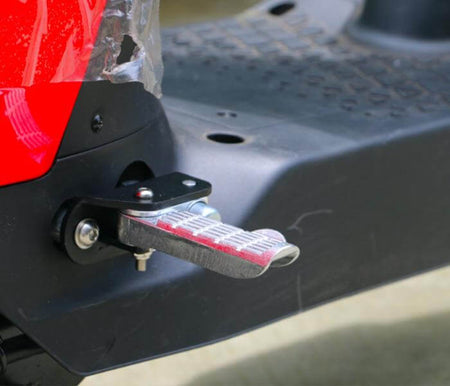 Disse bakpedalene er spesialdesignet for Super SOCO CU og gir stabilt fotfeste for både fører og passasjer. Med slitesterkt materiale og ergonomisk design sikrer de trygghet og komfort under kjøring.