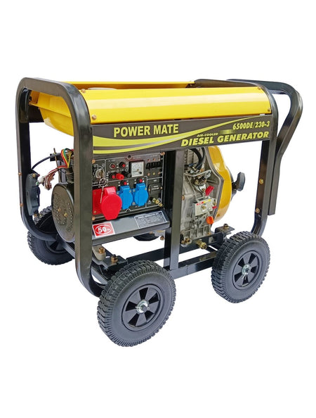 Power Mate 6500 Smt 4- takts diesel aggregat 3 fas 220V og 1 fas 220V El-start, batteri og drasnor inkludert. Dette er Power Mate sin toppmodell. Dette er et stort og driftsikkert aggregat til markedets desidert beste pris. Passer utmerket for bygg og anleggsbransjen. Husk å kjøp kraftig nok aggregat. Alle våre aggregat fra Power Mate leveres med 2 års garanti.