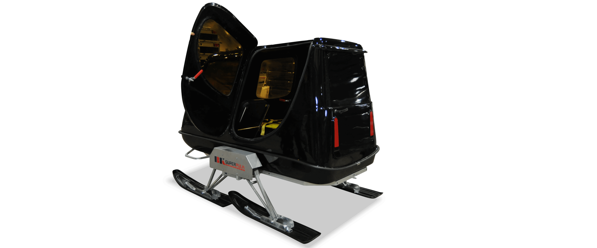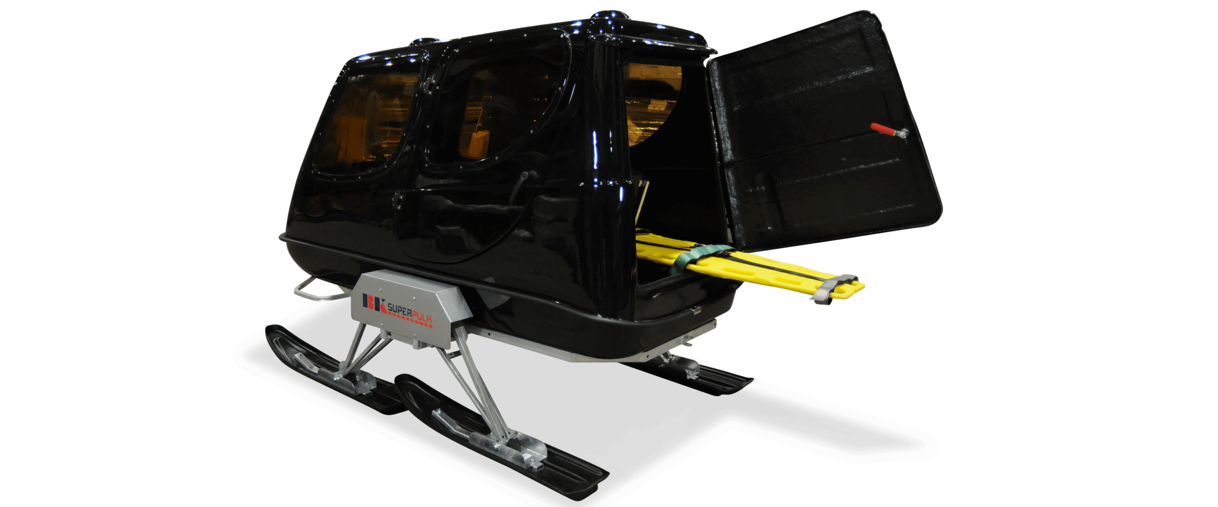Denne er ypperlig som rednings-pulk, da seter kan legges ned og det blir plass til en båre.
