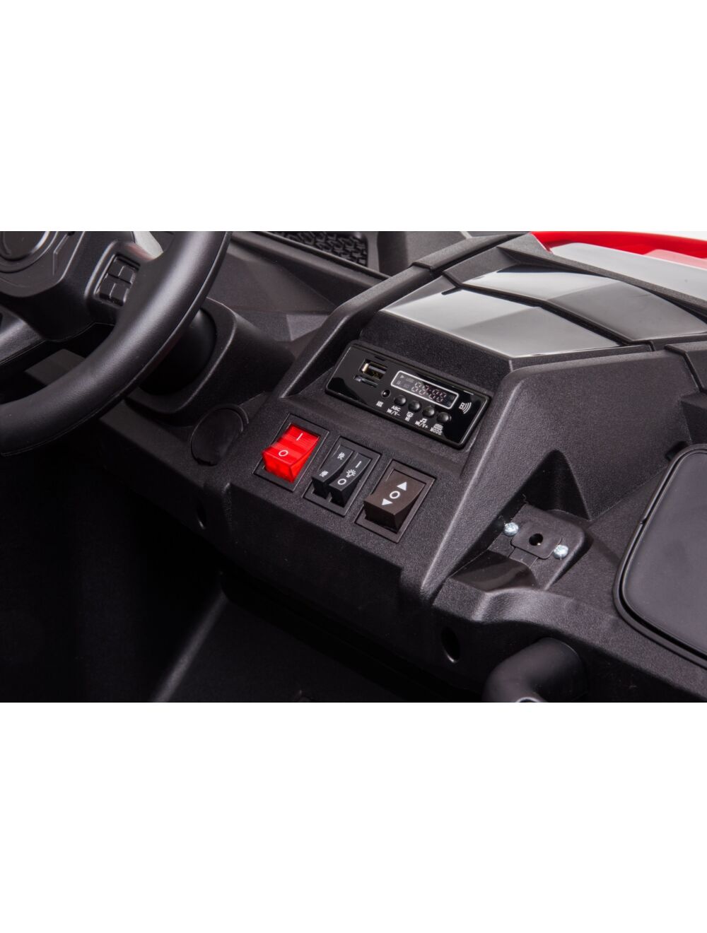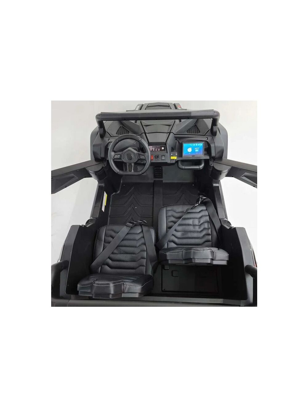 Spesifikasjoner: Ledlys foran og bak Maks hastighet 6 kmh jf leketøy direktivet. Dette er maks lovlig hstighet. Batterikapasiteten (12V 14 Ah blybatterier Dekk Eva gummihjul Maks lastevekt 100 kg Toseter Ja Setebelter Ja Skinnseter Nei Fjernkontroll 2,4 ghz Motor 4x 550 rs motorer One click start Firehjulsdrift Ja Mål 135 x 95 x 80 cm Størrelse X-Large Brutto/ nettovekt 36,5/30.5kgs Begge dørerne e kan åpnes Panseret kan åpnes Justerbart ratt Lav og høyserie gir Demping på alle fire hjul Bilstereo MP3, TF card Bluetooth og USB
