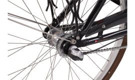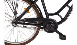 Sykkelen har 3 innvendige gir fra Shimano Nexus, dobbeltbunnede aluminiumsfelger med rustfrie eiker og lukket krankboks for lang holdbarhet. Kombinasjonen av fotbremse bak og V-brems foran gir trygg og stabil nedbremsing.