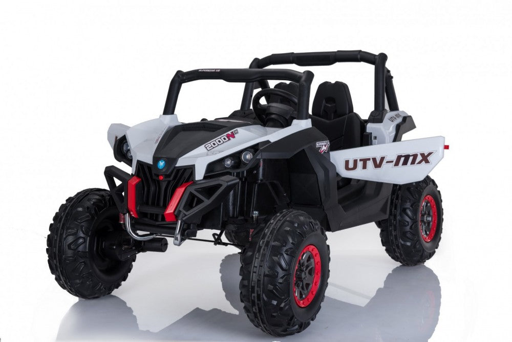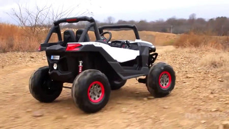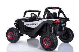 Ikke bare har den firehjulsdrift - den har også gummihjul og soft start / stopp. Dette er en av våre største modeller og her er det plass til 2 barn!