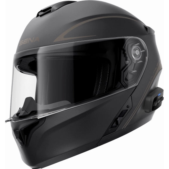 Ny prisgunstig åpningshjelm fra Sena med integrert intercom og solvisir. Her er alt ferdig montert fra fabrikken, ta den ut av esken og begynn å bruke produktet! Intercom'en lar deg koble til mobiltelefon og GPS, og den har mulighet for gruppeintercom med inntil 4 deltakere.