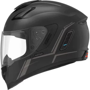 Stryker er Senas nyeste helhjem, utstyrt med både Mesh Intercom™ og Bluetooth® Intercom teknologi pluss premium høyttalere og mikrofon fra lydekspertene hos Harman Kardon. Stryker har sømløst integrerte høyttalere og mikrofon som gir et nytt nivå av presisjon og klarhet til lyden i hjelmen. Stryker er fullpakket med førsteklasses funksjoner, inkludert et integrert LED lys bak på hjelmen og et praktisk solvisir. Hjelmen har et ECE-sertifisert kompositt glassfiberskall med effektivt ventilasjonssystem med 7 ventiler.