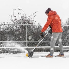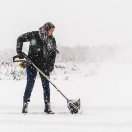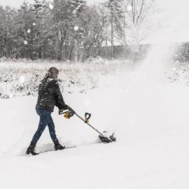 Med en vekt på kun 4,15 kg (uten batteri) er denne batteridrevne snøfreseren enkel å håndtere og betjene, og den kraftige motoren kaster snøen mellom 2 og 5 meter unna,