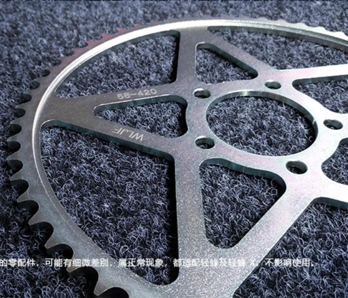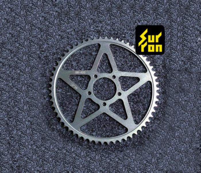 Dette bakre tannhjulet har 58 tenner og passer 420-serie kjeder — typisk brukt på motorsykler, scootere og el-sykler. Ved å øke antallet tenner senkes sluttgiringen, noe som gir økt moment og bedre akselerasjon, men redusert toppfart. Husk at endring i tannhjul kan kreve justering av kjedets lengde.