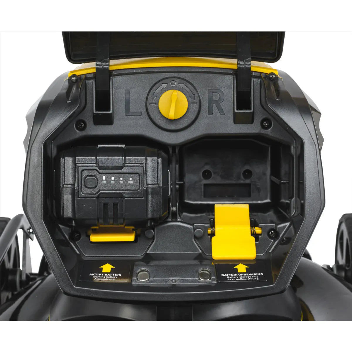 Maskinen har plass til et ekstra batteri, slik at du raskt kan bytte og fortsette klippingen når første batteri er tomt.