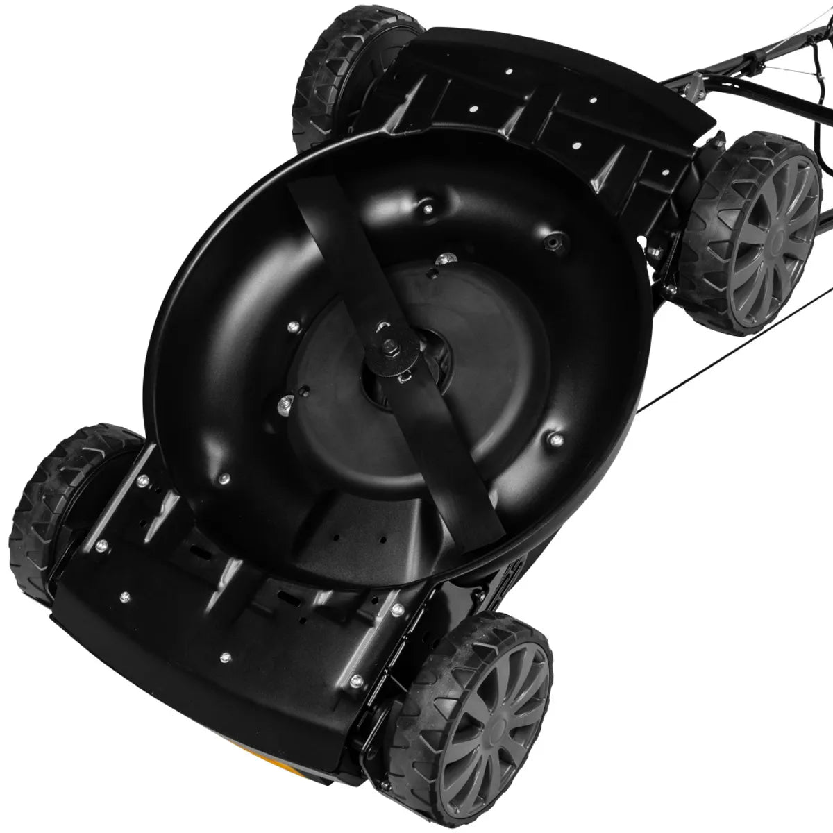 Hjul: 8" hjul med doble kulelager og gresskrapere – reduserer oppbygging av vått gress.