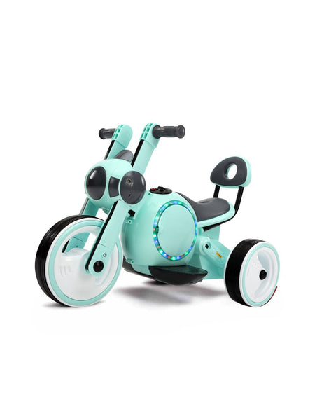 Tøff elektrisk trehjuling for de minste. Teknisk info: * Sounds & Lights/Horn * Forward & Reverse * Foot accelerator * Motor:1* 15W * Battery:1*6V 47ah * 6V Charger 1*500ma * Maximum Capacity:30Kgs * Color option:pink,,Green Carton Size:52*38*32cm Item Size:70*42*42cm N.W. –4.3Kgs G.W. –5.8Kgs