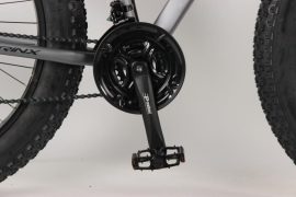 Trinx Fatbike 26" Grey Praktisk fatbike med Shimano gir fra Trinx. Trinx fatbike har optimalisert geometri, for god stabilitet i utforbakker og muligheter for et bredt utvalg av dekk. Trinx fatbike er det ultimate fremkomstmiddelet for sykkeleventyr året rundt, på stier og i terreng, både på fjellet og i skogen. Denne ekstremt allsidige sykkeltypen vil imponere deg med sin utrolige bæreevne og kontroll. Du kan uten problemer kjøre på en rekke typer røffe og bløte underlag, fra sandstrender og gjørme, til snødekte stier og vidder. Spesifikasjoner: