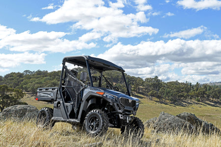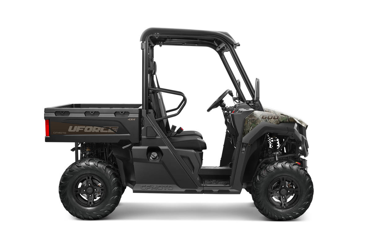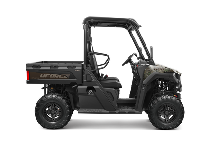 UFORCE 600 er full av standardfunksjoner som progressiv EPS, og er kraftigere, smidigere og enda mer arbeidsklar enn forgjengeren. Ta på deg friluftsliv med tillit, og dra raskere gjennom arbeidsdagen din med lett håndtering, 4x4-kapasitet og en gassassistert lasteplan. I tillegg til det fantastiske nivået av standard spesifikasjoner, er UFORCE 600 også svært tilpassbar takket være den enorme tilbehørslisten fra CFMOTO. Den nye UFORCE 600 legger kraft, evne og allsidighet i dine hender enten det er for jobb, moro eller balansen i mellom! Traktor B Hastighet: 60 km/t Farge: Camo eller Grå Benkesete for enkel tilgang Automatisk bakdifferensial Nettdører er standard Mye tilbehør er tilgjengelig allerede i desember 41 HK / 49NM Standard: EPS, vinsj, hengerfeste, tak og lasteplan med tipp MOTOR