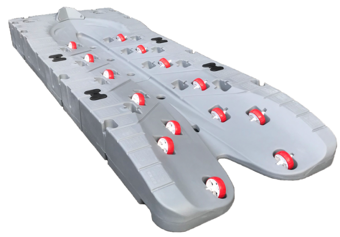 Denne modellen inkluderer et avtakbart stopp for føreren på vannscooteren med feste for fortøyningsramme. Den har også 14 justerbare hjul.