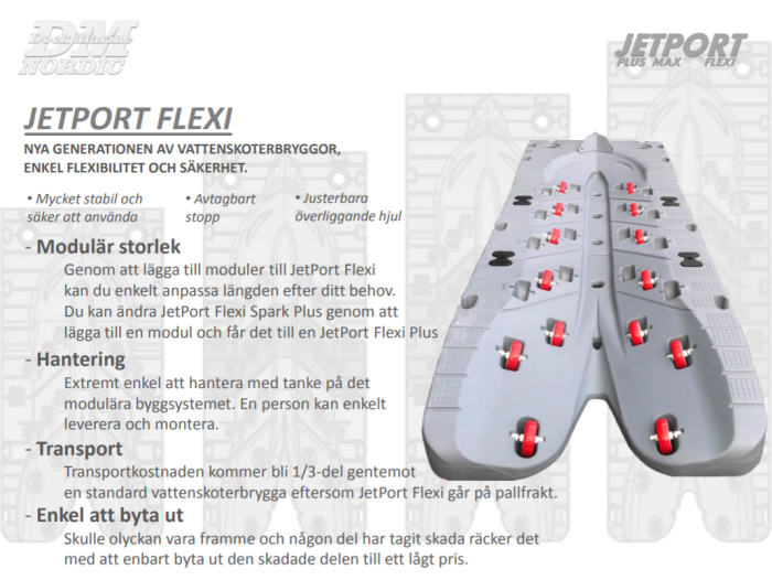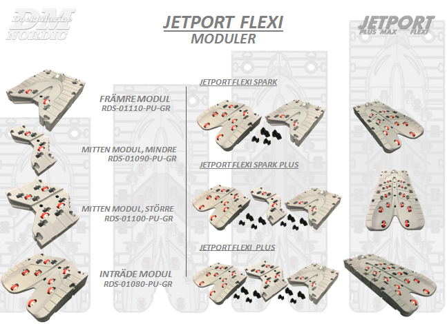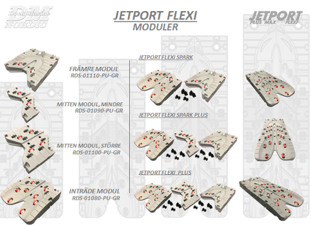Modulær størrelse; Ved å legge til moduler i JetPort Flexi, kan du enkelt justere lengden etter dine behov. Du kan endre JetPort Flexi Plus ved å legge til en modul og gjøre den til en JetPort Flexi Extra.