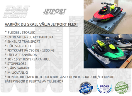 Flytebryggen er meget stabil og sikker å bruke. JetPort Flexi er av høyeste kvalitet og laget av tykt polyetylen (Linear Low Density Polyethylene).