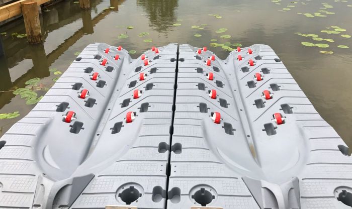 Rotasjonsstøpt, UV-beskyttet polyetylenstruktur med eksepsjonell flytekraft og stabilitet. Våre unike flytebrygger er designet med luftkanaler på undersiden for å skape en sugeeffekt ved å holde på luften under som skaper et høyt nivå av stabilitet.
