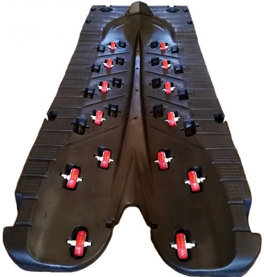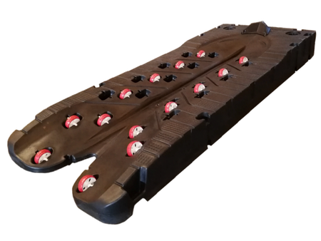 V-formen gjør det enkelt å kjøre vannscooteren på flytebryggen. Ved hjelp av 14 justerbare hjul glir vannscooteren lett i vannet, og det er like enkelt å kjøre vannscooteren opp på docken igjen. Stoppblokken sørger for at vannscooteren holder seg trygg og i riktig posisjon.