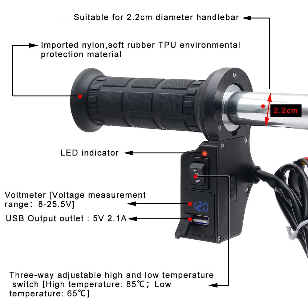 Disse varmehåndtakene og holkene med 12V uttak gir deg full kontroll over temperaturen på styret, slik at du kan kjøre komfortabelt selv på kalde dager. Perfekt for arbeid, fritid eller lange turer i krevende værforhold.