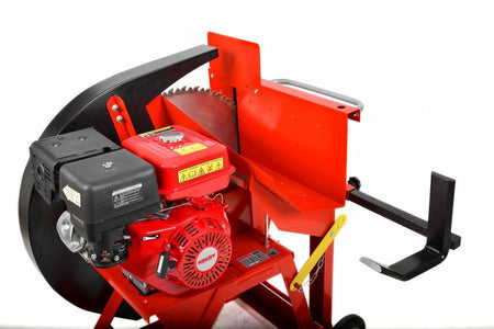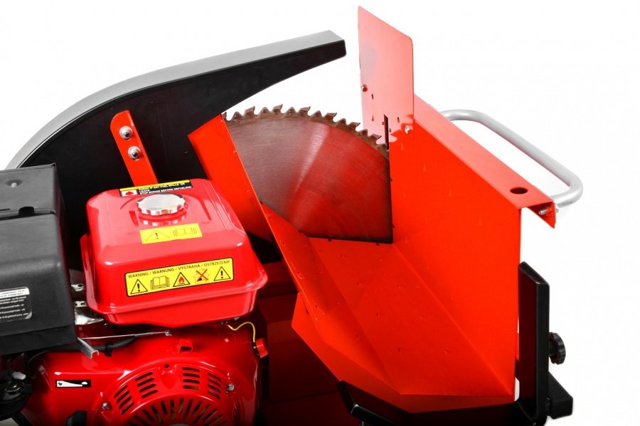 Bensindrevet vedsag - 13 hestekrefter. Effektiv vedkapper for stokker med diameter opp til 210 mm (maks diameter 230 mm). Med 700 mm i diameter roterende sagblad